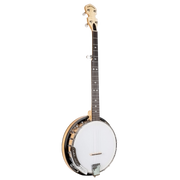 The Gold Tone CC-100R is expertly crafted in Gold Tone’s Florida workshop, combining quality materials with versatile design. Featuring a hard maple neck with a two-way adjustable truss rod, a separate rosewood fretboard, and an 11” multi-ply maple rim with dual coordinator rods, this banjo is both durable and highly playable. Its natural-blonde high-gloss finish highlights the fine maple wood grain, while the engraved Gold Tone armrest, chrome-plated hardware, and Snowflake inlays give it an elegant and professional appearance.