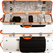 The CC825 Carbon Fiber Violin Case combines strength, lightweight design, and modern style in an oblong case built for professional players. Its carbon fiber shell ensures maximum durability with reduced weight, while the interior suspension cushioning keeps your instrument secure. With ample storage, stylish exterior color options, and ergonomic backpack straps, this case delivers both protection and portability for serious violinists.