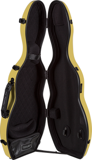 Each Tonareli fiberglass case begins with its own mold. Fiberglass sheets are layered inside and coated with thermal resin. Once sealed and hardened, this process creates a strong, lightweight, and durable cello-shaped case with excellent thermal insulation. Once closed, your instrument is protected not only from inclement weather but also sudden temperature changes.