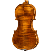 Constructed from select spruce and moderately flamed maple, the Strad Model features a deep brown antiqued varnish over a golden ground, giving it the refined, “Old German” aesthetic reminiscent of master instruments from the early 20th century. Every detail — from the balanced arching to the fine edgework — reflects the workshop’s dedication to tonal excellence and visual artistry.