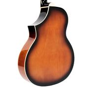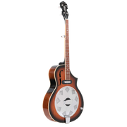 The Gold Tone Dojo-DLX Deluxe Resonator Banjo masterfully merges the soulful resonance of a Dobro guitar with the playability and feel of a five-string banjo. Crafted from flamed maple with a cutaway body for easy access to upper frets, it radiates elegance with its tobacco sunburst high-gloss finish and decorative white ABS binding. This premium hybrid instrument embodies Gold Tone’s “Folkternative” spirit—offering traditional craftsmanship fused with modern tonal exploration.