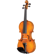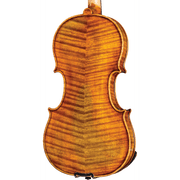 Finished in a tastefully antiqued amber varnish over a transparent golden ground, the instrument captures timeless elegance and craftsmanship. Outfitted with ebony fittings, a Guarneri-style chinrest, Despiau “B” level French bridge, and Pirastro Evah Pirazzi strings (loop E), this violin achieves precise tonal balance and professional-grade resonance straight out of the case.