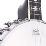 Equipped with pre-WWII-style 32-hole Tubaphone tone ring, Remo Renaissance head, and maple/ebony bridge