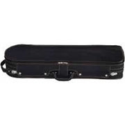 Deluxe oblong professional violin case. An elegant hardwood case with premium velvet two-toned interior, four bow holders, assorted pockets, hygrometer, premium leather handle, durable locking latch, and hinges. Backpack/shoulder straps included. Excellent impact and protection for your instrument. Available in deep hunter green with a cream interior and gold roping. Weight is 6.4 lbs. Black exterior. 4/4 violin only.